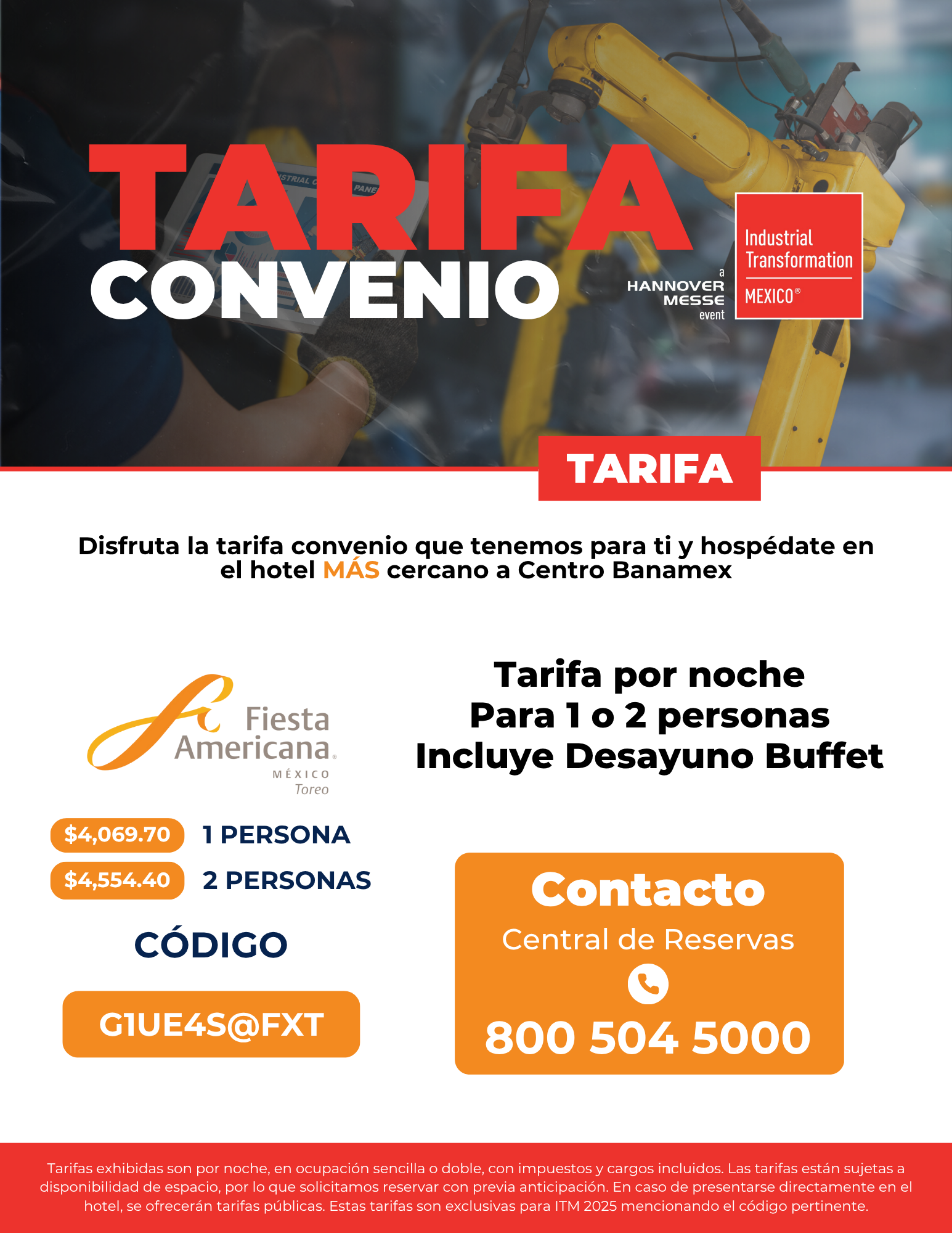 ITM es la feria de la Industria 4.0 en México y América Latina, donde encontrarás a más de 275 expositores en los sectores de logística inteligente, automatización, robotización, manufactura aditiva, fabricación inteligente, y soluciones de energía.